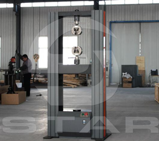 WDW-100E微機(jī)控制電子萬能試驗(yàn)機(jī)(落地式)采用雙空間門式結(jié)構(gòu),上空間拉伸,下空間壓縮、彎曲。主機(jī)部分由兩根導(dǎo)向立柱、上橫梁、中橫梁、工作臺組成落地式框架,調(diào)速系統(tǒng)安裝在工作臺下部。由調(diào)速精度高、范圍寬、性能穩(wěn)定的日本松下交流伺服電機(jī)通過同步齒形帶減速系統(tǒng)帶動滾珠絲杠副旋轉(zhuǎn),滾珠絲杠副驅(qū)動中橫梁,帶動拉伸輔具(或壓縮、彎曲等輔具)上下移動,實(shí)現(xiàn)試樣的加荷與卸載。該結(jié)構(gòu)保證機(jī)架有足夠的剛度,同時實(shí)現(xiàn)高效、平穩(wěn)傳動。