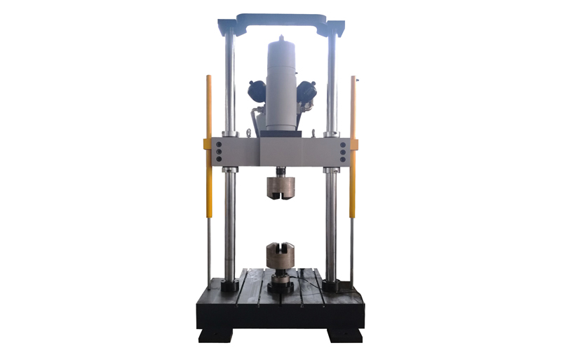 1、主機(jī):主機(jī)為雙立柱框架式結(jié)構(gòu),伺服直線作動(dòng)器下置于主機(jī)框架內(nèi)部。強(qiáng)迫液壓夾頭分別安裝在橫梁和作動(dòng)器活塞桿頂端。主機(jī)橫梁調(diào)整采用液壓升降、液壓夾緊、彈性松開式結(jié)構(gòu),保證試驗(yàn)過程中橫梁穩(wěn)固可靠,同時(shí)保證在非試驗(yàn)狀態(tài)時(shí)橫梁保持鎖止不動(dòng)。立柱外表面采用電鍍硬鉻處理,可有效增加立柱抗磨損能力,提高防腐蝕能力,同時(shí)增加主機(jī)外形的美觀程度。